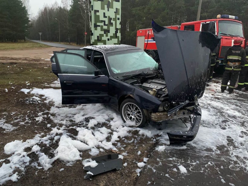 У полигона под Борисовом столкнулись BMW и Volkswagen Passat. Молодой водитель скончался