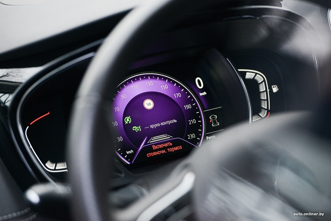 Габаритная длина нового Espace — почти 5 метров. При этом радиус разворота у него как у хетчбэка С-класса. Спасибо за это системе доворота задних колес (4 Control). На низкой скорости они поворачиваются в противоположную от передних колес сторону и делают минивэн очень маневренным на парковке или узких городских улицах. На высокой скорости задние колеса слегка поворачиваются вслед за рулем, что обеспечивает машине дополнительную устойчивость на автобанах. Такое шасси, как и настраиваемые амортизаторы, — прерогатива комплектации Initiale Paris.
