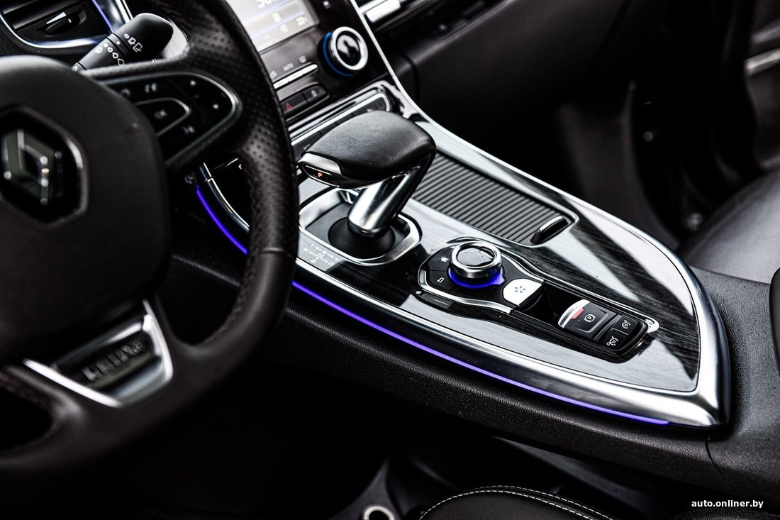 Дмитрий приобрел этот Renault минувшим летом. Машина из Франции, 2015 года выпуска (почти 2016-го). Под рельефным капотом минивэна скрывается 1,6-литровый мотор, который при своем скромном объеме развивает мощность 160 л. с. и тягу 380 Н·м. Разгон до сотни — менее 10 секунд. По словам владельца, автомобиль слегка «задумчив» на низких оборотах. Ситуацию спасает режим Sport.