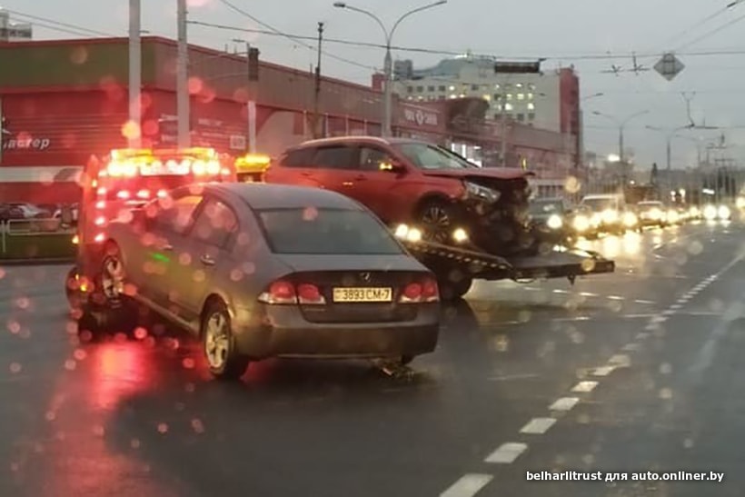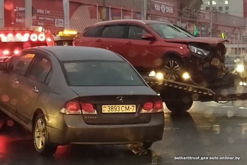 — По правой полосе за 25 минут доехали до улицы Калиновского. На перекрестке проспекта Независимости и улицы Калиновского была первая авария: Lada Vesta и, кажется, Honda. У Lada перед всмятку, у Honda — передняя правая четверть. Видимо, Honda поворачивала налево, в сторону Уручья, а Lada шла по прямой, в сторону улицы Всехсвятской. Ну либо кто-то пытался проскочить.