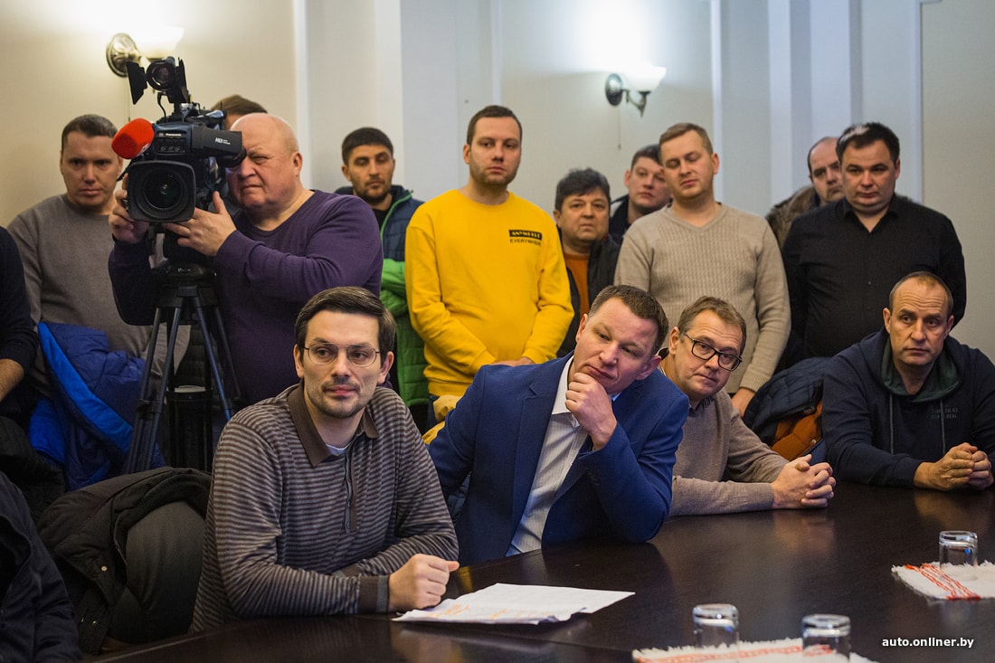 В это время в Минске у входа в Минтранс собралось около 30 представителей разных фирм. Без приглашения или согласования они пришли озвучить проблемы и требования. В здании в этот момент проходил брифинг с представителями телевидения и других госСМИ на тему «Большая часть разрешений на перевозки в Польшу выдана малому бизнесу». Без лишних разъяснений группа разместилась в приемном зале замминистра. Алексей Ляхнович согласился на встречу.
