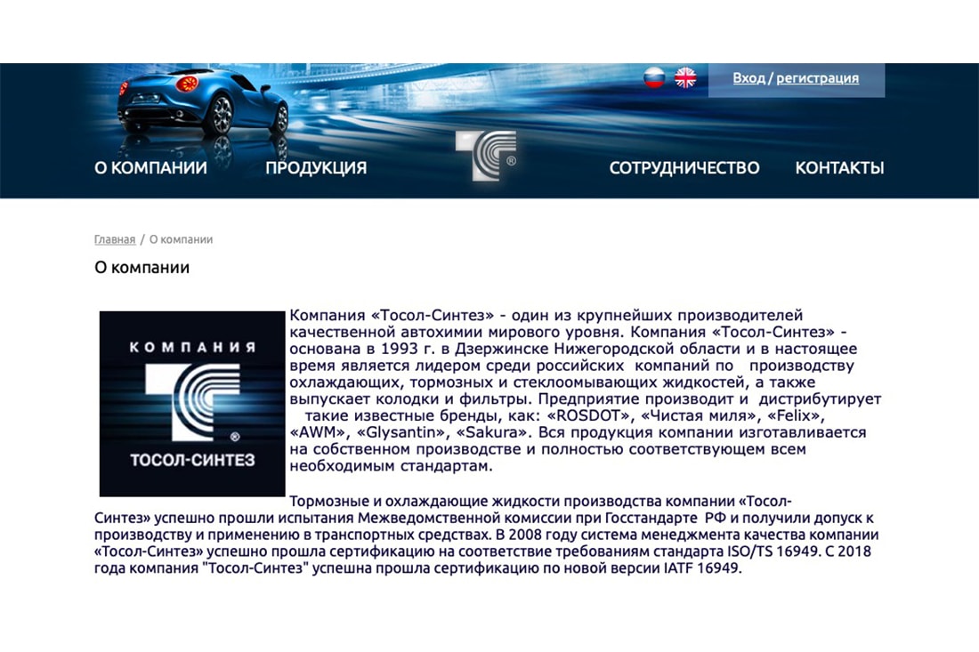 В качестве производителя указано еще одно предприятие из Дзержинска (Нижегородская область) — ООО «Тосол-Синтез-Инвест». «Предприятие производит и дистрибутирует такие известные бренды, как: „ROSDOT“, „Чистая миля“, „Felix“, „AWM“, „Glysantin“, „Sakura“. Вся продукция компании изготавливается на собственном производстве и полностью соответствующем всем необходимым стандартам», — сказано на официальном сайте.