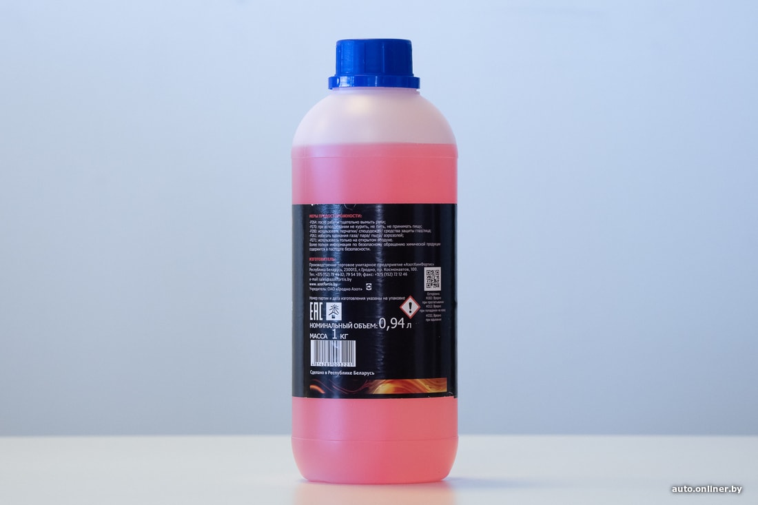 А вот охлаждающая жидкость гродненского производства (Fortis) не подвела: температура начала кристаллизации — минус 37 °C. На этикетке же указано −35 °C. Все честно и даже с запасом.
