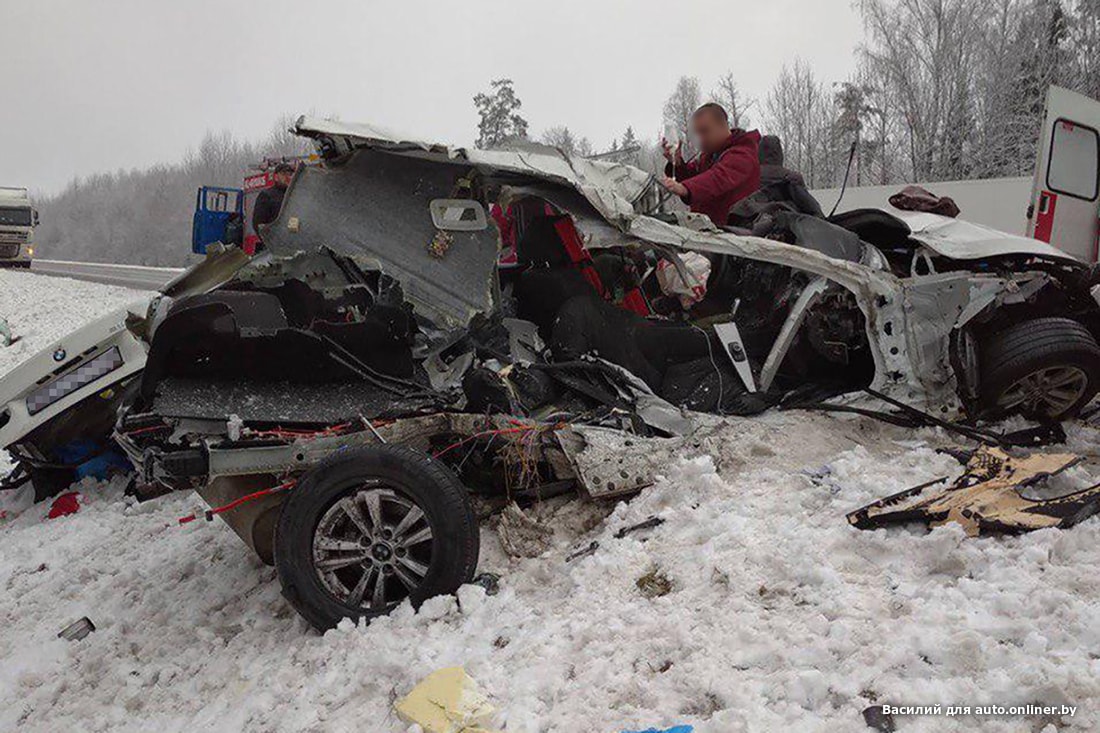 — Ехал по трассе в сторону Витебска, смотрю, впереди две-три машины. Подъезжаю: в кювете фура и эта BMW, кузов весь разворочен. За рулем парень. Живой, но ни слова не говорит, только глазами моргает. Травмирован: голова в крови. Подбежали люди, кто-то достал аптечку из фуры, стали оказывать первую помощь. Из авто не пытались доставать — мало ли, позвоночник, — рассказал собеседник.