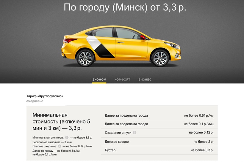 Тарифы, кстати, указаны на сайте «Яндекс.Такси»: