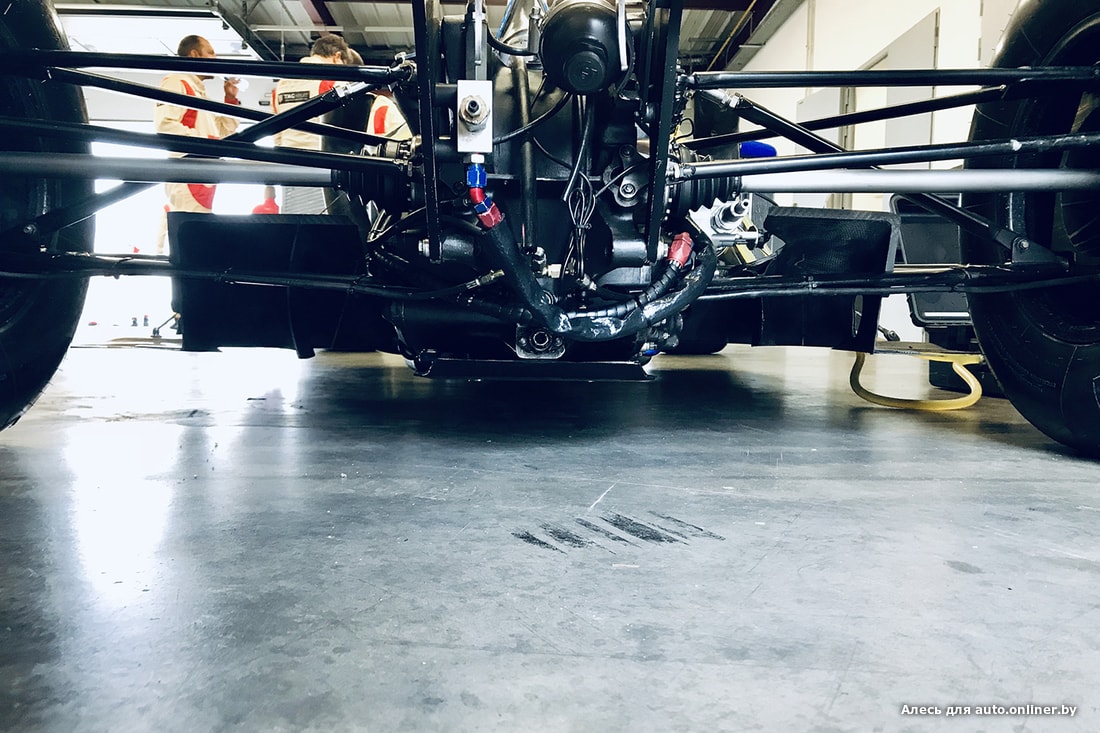 — Максимальный допустимый рост пилота — 1,90 м. Я вот как раз примерно этого роста и, нужно сказать, ощутил на себе все возможные неудобства. В болиде установлено формовочное сиденье из углепластика, его вес — 2,5 кг и оно сделано под индивидуальные особенности конкретного гонщика. А тут я. Причем чем человек выше, тем больше ему приходится сгибать колени, упираться ими в монокок. Но самая большая проблема — в это сиденье надо провалиться и принять положение лежа с согнутыми коленями. Чтобы это сделать, нужно пройти через боль — у меня в буквальном смысле были громадные синяки на боках.