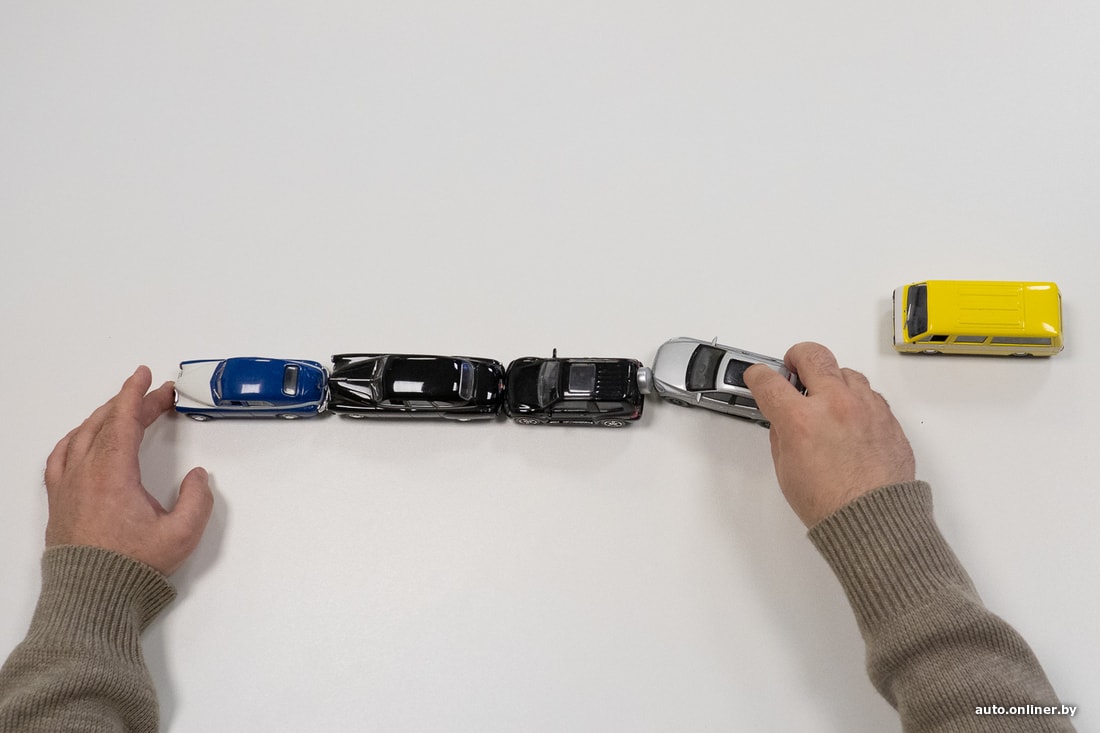 — На какой машине обычно ездят начинающие водители? Наверное, на Volvo, — предположил Краснов и стал расставлять модели на столе. — Автомобили находятся на парковке или же у края проезжей части, иногда под углом — не важно. А вот едет новичок. Он хочет припарковаться, но начинает заруливать слишком рано или слишком поздно и задевает стоящую машину.