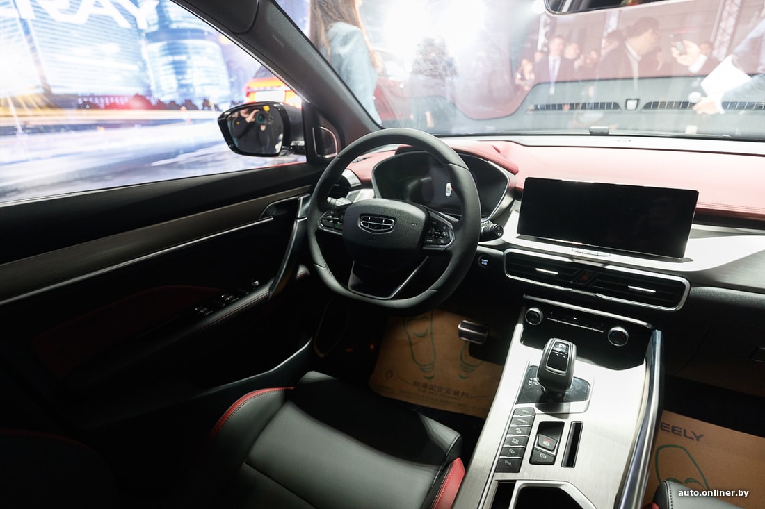 Если вы открыли эту статью только ради цен, не будем томить. Пока в Беларуси будет доступно две версии нового кроссовера Geely: Comfort и Flagship. Первая стоит 40,9 тысячи рублей, вторая (она на фото и видео) — 43,9 тысячи. Обе оснащаются одинаковым 1,5-литровым турбомотором (177 л. с.) и 7-ступенчатым роботом. Привод исключительно передний.
