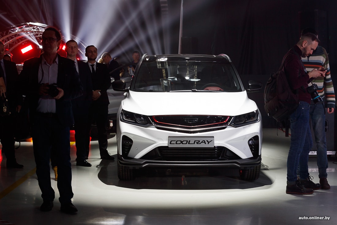 Пышная презентация Coolray прошла на заводе. На мероприятии присутствовало несколько сотен гостей, среди которых были представители основных СМИ и сотрудники многочисленных дилерских центров Geely. Перестали быть тайной комплектации нового кроссовера. Кроме того, корреспондент Onliner узнал некоторые подробности о перспективах данной модели на предприятии «Белджи».