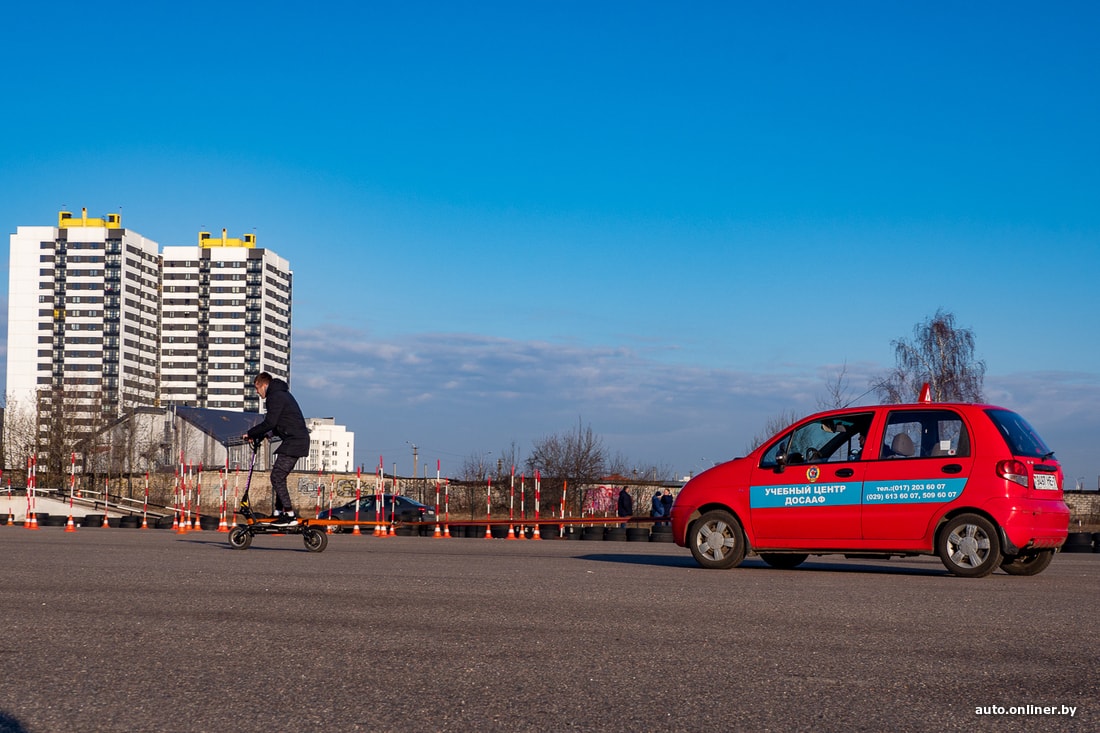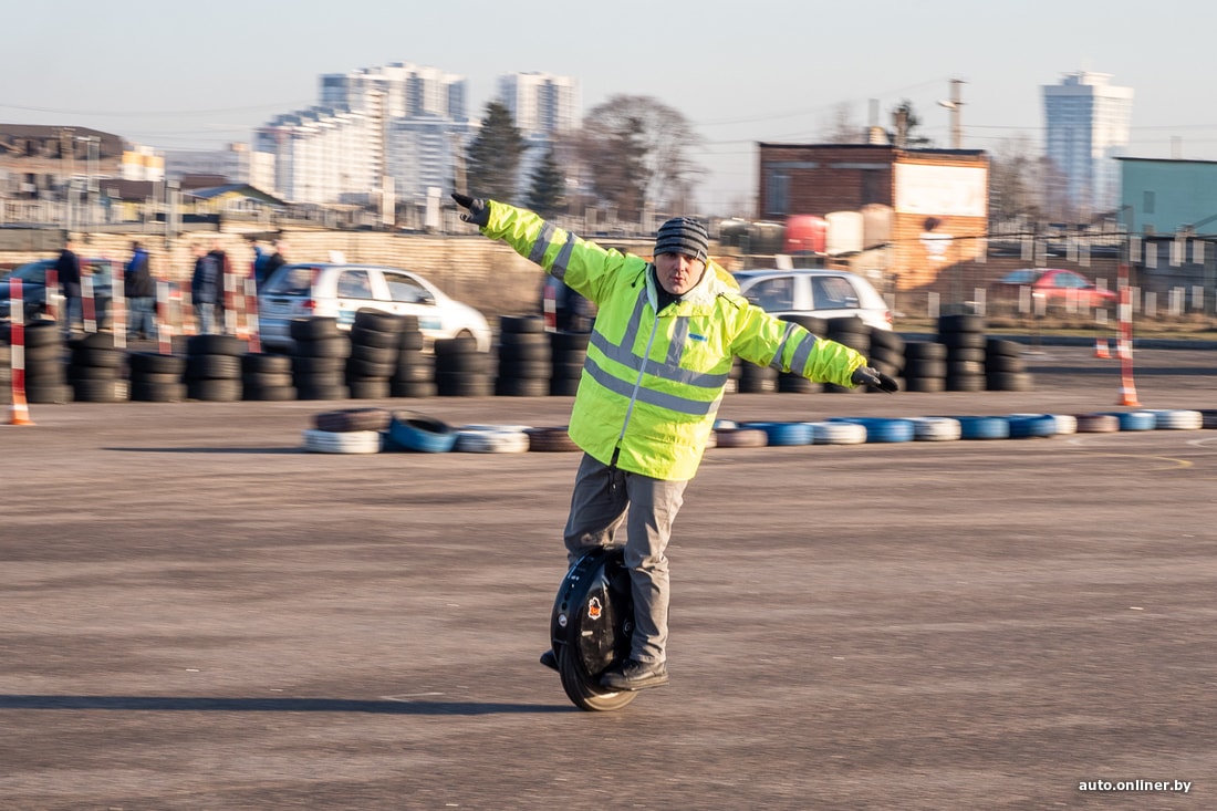 Как полагает инструктор, потенциал моноколес, электросамокатов и прочих сегвеев не до конца известен широкой публике. Их ошибочно воспринимают как детскую забаву, хотя это довольно серьезные устройства. Чтобы развеять сомнения, Игорь Сущенко предложил продемонстрировать, на что способны средства персональной мобильности, как их предлагают называть в ПДД.