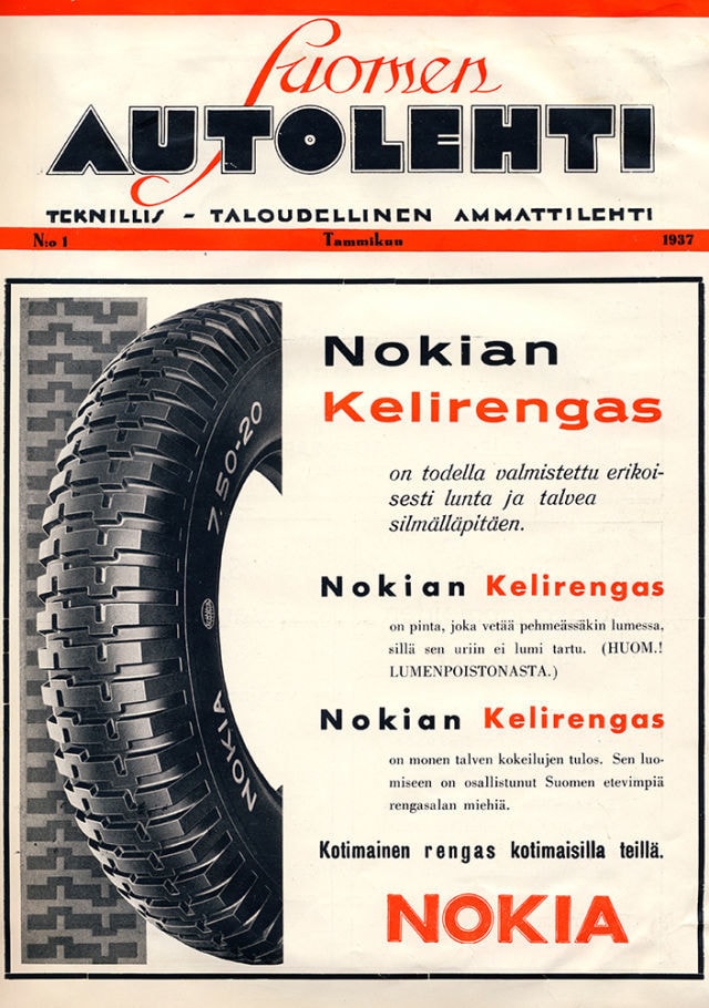 Забежали вперед, давайте возвращаться. В 1925 году Suomen Gummitehdas налаживает производство велосипедных шин. Но Антти Антеро понимал, что этого недостаточно, что по-настоящему заявить о себе компания сможет лишь выпуская автомобильные шины. На подготовку ушло еще несколько лет, и вот в 1932-м предприятие наконец представляет Kesäpinta — «Летнюю шину».