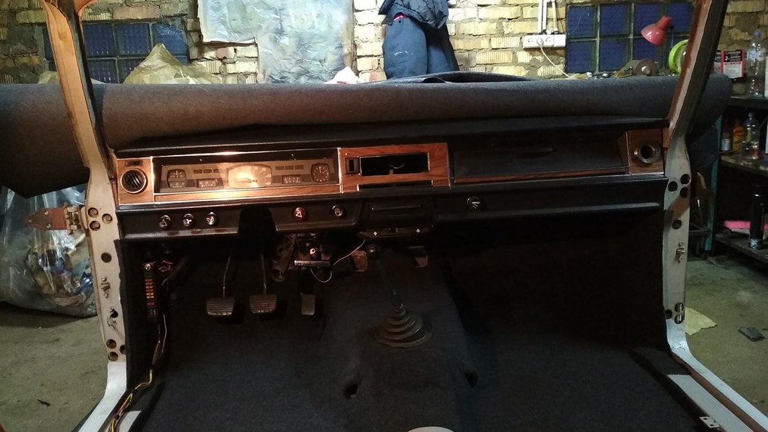 «Перед установкой двигателя я заменил в нем неисправные детали, — продолжает описывать преобразования молодой человек. — С подключением проводки современного ДВС к автомобилю 1979 года пришлось повозиться. Никакой информации по данному вопросу в сети я не нашел, поэтому пришлось самому вникать в то, какой проводок куда подсоединять. Также я отремонтировал мост и подвеску, установил гидроусилитель руля. В целом на техническую часть и был потрачен первый год работы».