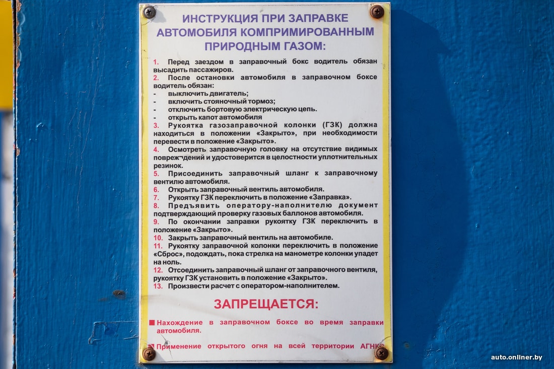 — На заправку уходит минут 5—10 от силы. Это же компрессорная станция, газ здесь подается под давлением. И вот от этого давления все может рвануть, если что-то сделать неправильно. Когда заправка заканчивается, оператор сообщает об этом по громкоговорителю. Можно вернуться к машине, закрыть кран, отсоединить шланг и затем пройти к окошку для оплаты. Многие оставляют авто возле колонки и идут оплачивать, хотя это тормозит всю очередь. Водители из регионов часто так делают — им непривычно видеть такие очереди. Хотя сейчас в Минске уже все привыкли — отъезжают, уступая место, и только затем идут к окошку.