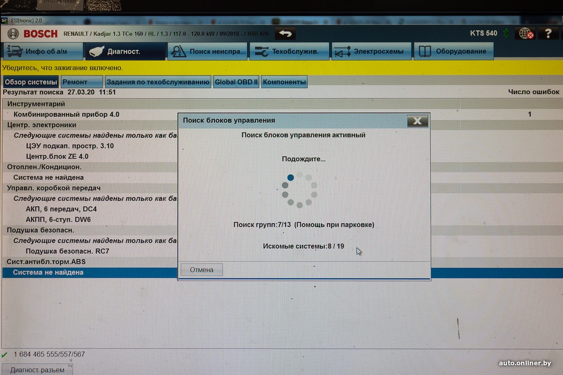 Диагност не сдается и предпринимает очередную попытку обойти систему. На этот раз удача: блоки удается прочесть — достаточно представить, будто перед нами европейский Kadjar, а не Arkana российского производства.