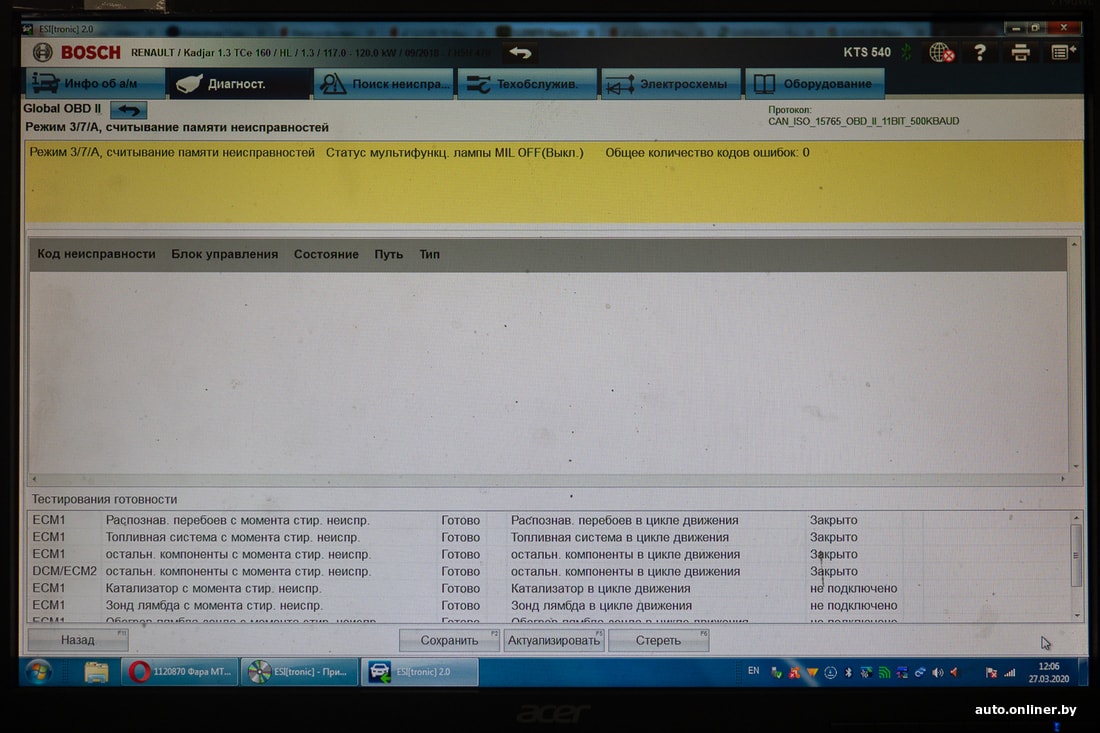 Так оно и вышло. Даже по стандартному протоколу OBD II, с помощью которого можно прочесть основные параметры, прибор не смог обнаружить электронные блоки. Система сообщает об ограничениях.