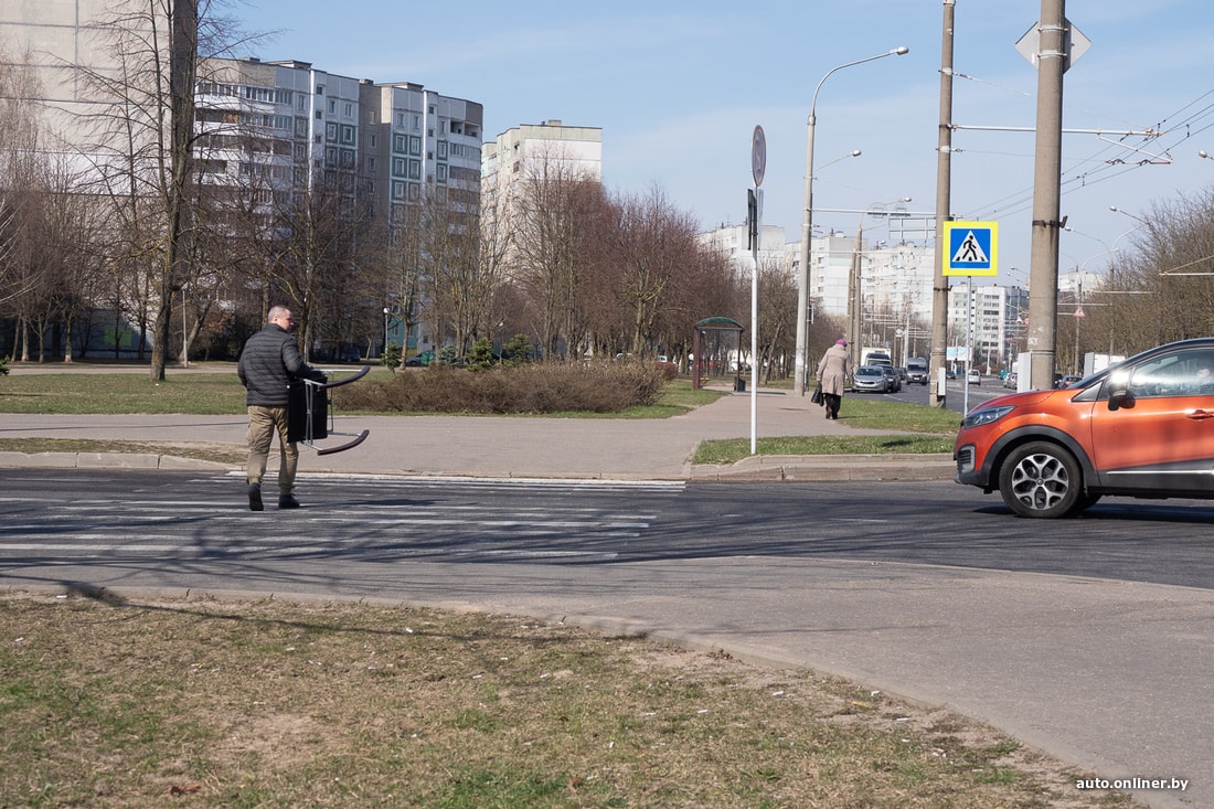 Первым делом проверяем версию о зависимости желания/нежелания водителей притормаживать от комплекции пешехода. Сначала на «зебру» отправляем видеооператора, который выглядит скорее как прыгун с шестом, нежели тяжелоатлет.