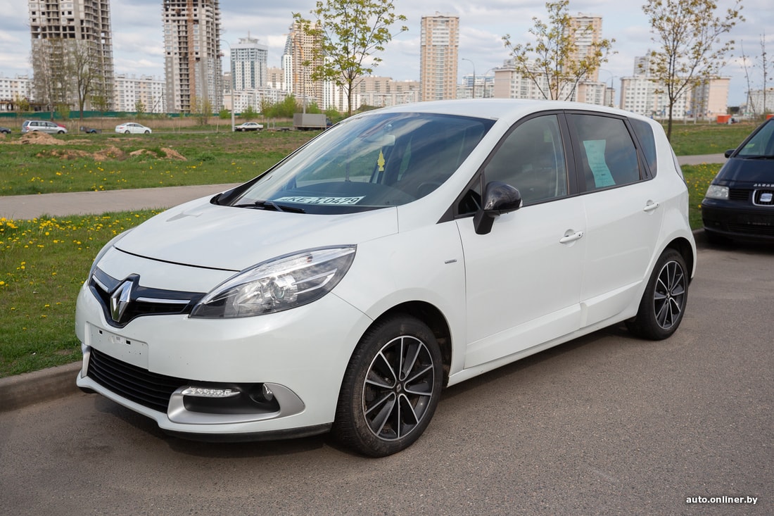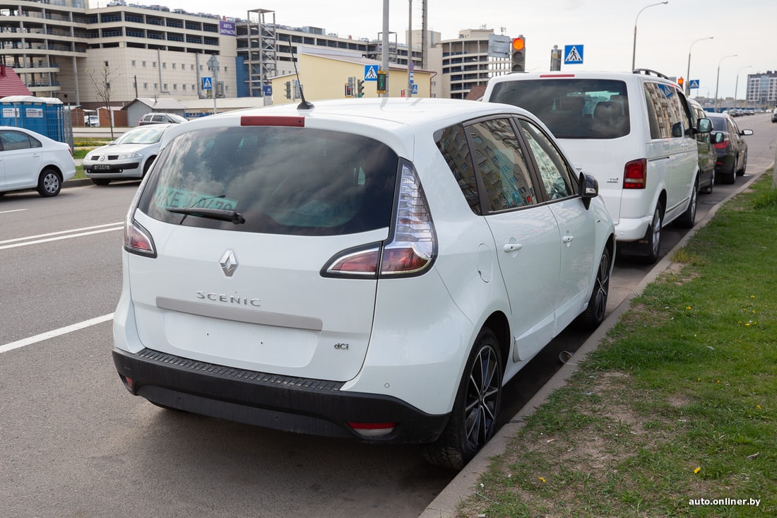 Семейство «Сцеников» сегодня представлено широко. Например, за такой компактвэн (2016 г. в.), выставленный у края проезжей части недалеко от ТД «Ждановичи», просят 9750 (вероятно, долларов). Сумма в 10 400 перечеркнута, что тоже примечательно и может косвенно свидетельствовать о спросе на автомобили и готовности продавцов снижать цену.