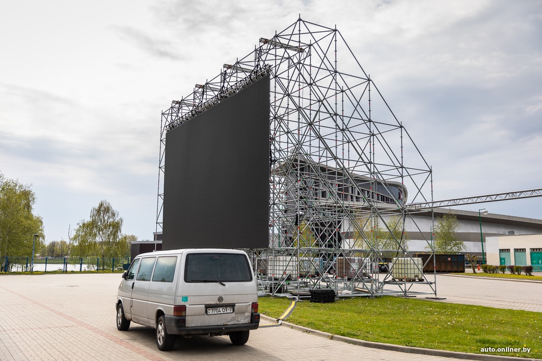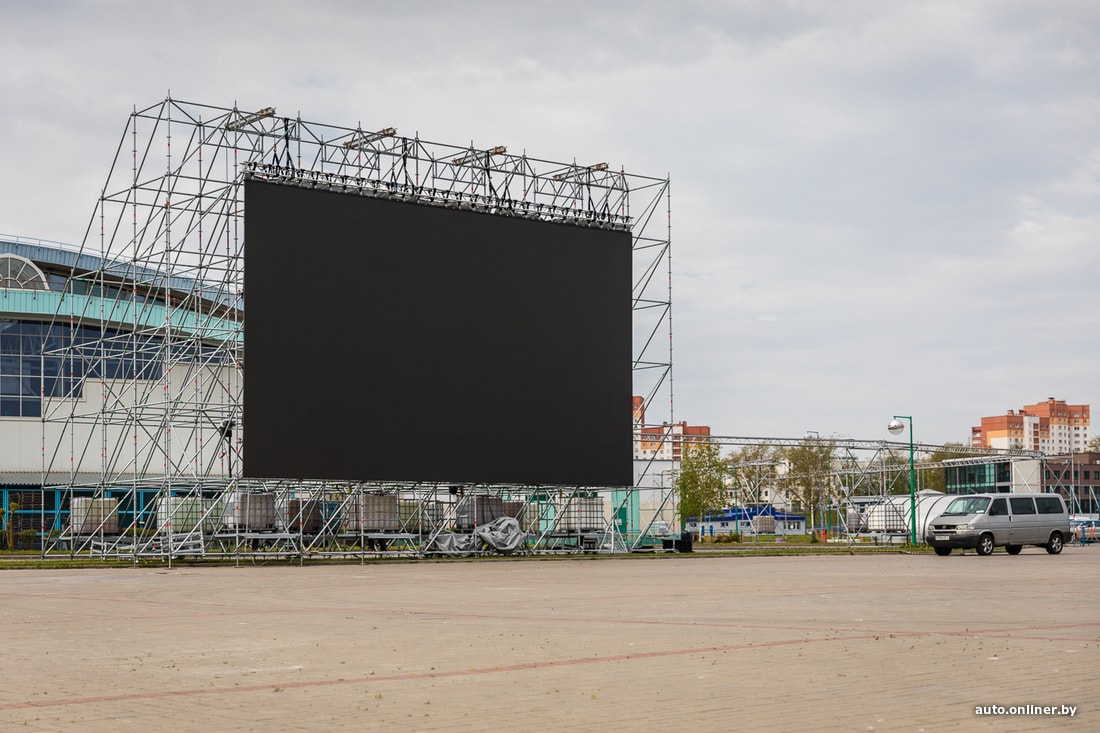 Позавчера утром на парковке за зданием столичного футбольного манежа появилась внушительная конструкция, напоминающая экран. Можно было сделать предположение о ее принадлежности к празднику Дня Победы. Но нет, там мероприятия не проходили. А сам экран еще ни разу не был запущен. Как удалось выяснить Onliner, вскоре здесь можно будет посмотреть кино, не выходя из машины. Правда, первый сеанс вряд ли состоится на этой неделе.