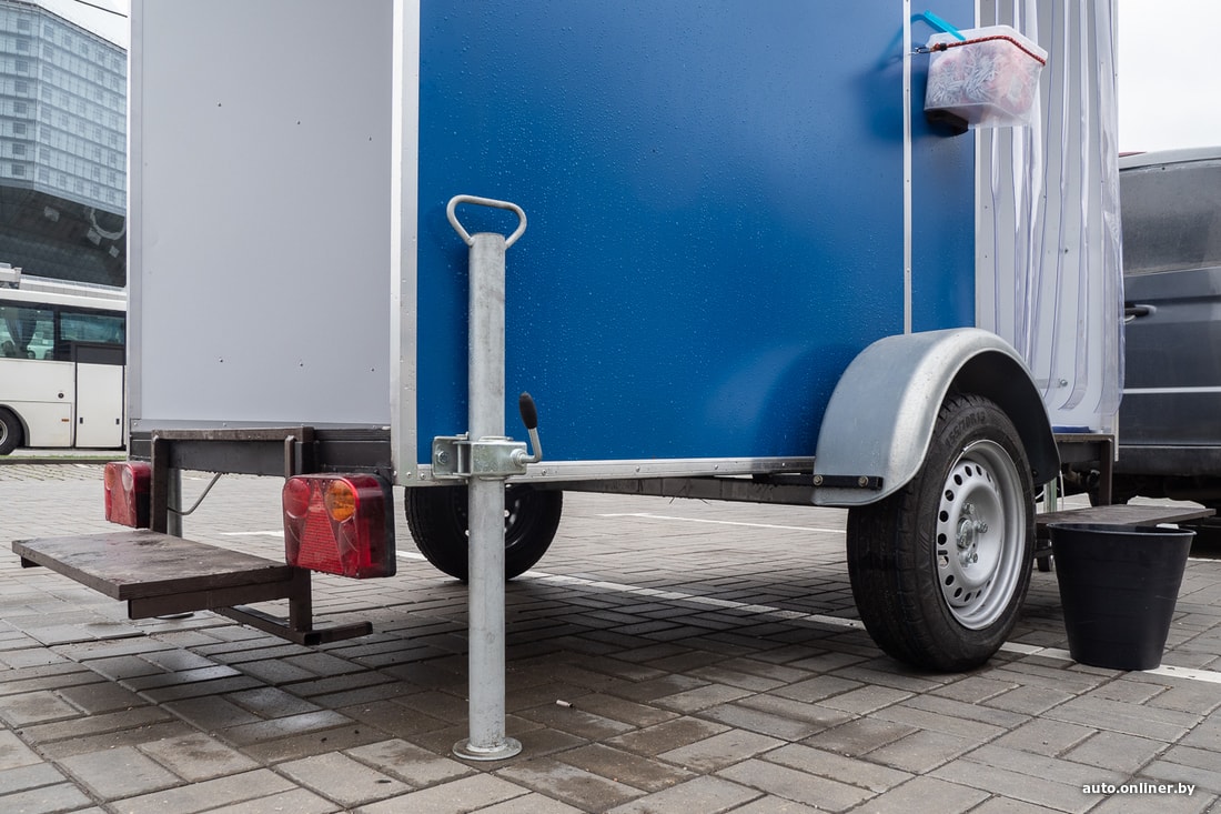 Внешне мобильный санитайзер выглядит как обычный прицеп, разве что кажется высоковатым, хотя это сделано с умыслом — через него свободно должен пройти взрослый человек, не испытывая сильный дискомфорт. Наши собеседники утверждают: «Дооборудовать его специальным трапом, чтобы соблюсти принципы безбарьерной среды, не проблема».