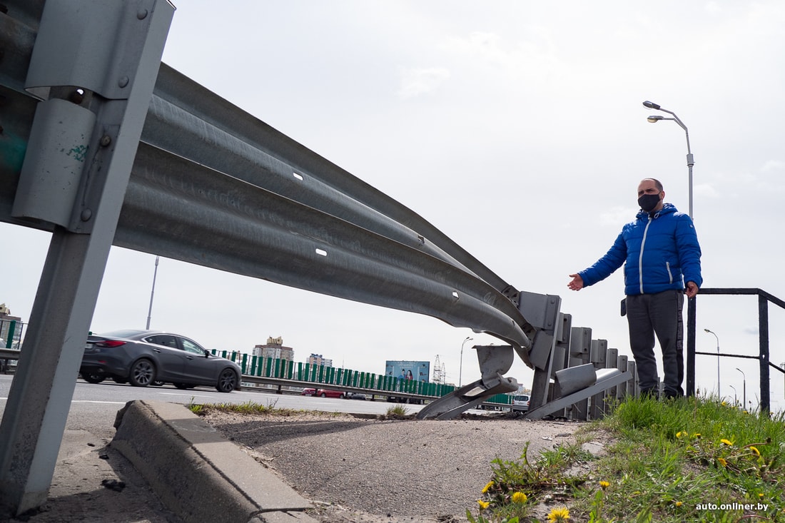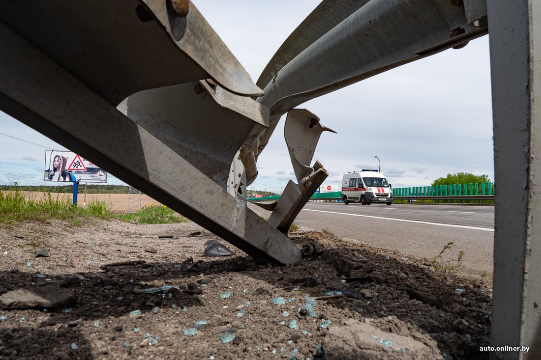 Авария произошла в минувший вторник, 12 мая, на внешней стороне МКАД (в районе съезда на ул. Мазурова). «Volkswagen Passat B3 ехал во второй полосе и начал уходить влево в третью полосу. По касательной он задел двигавшееся там авто (Volkswagen Passat B5), после чего ударился о разделительное ограждение, а потом его понесло резко вправо наперерез потоку. Машина врезалась в отбойник на обочине», — сообщал очевидец ДТП.
