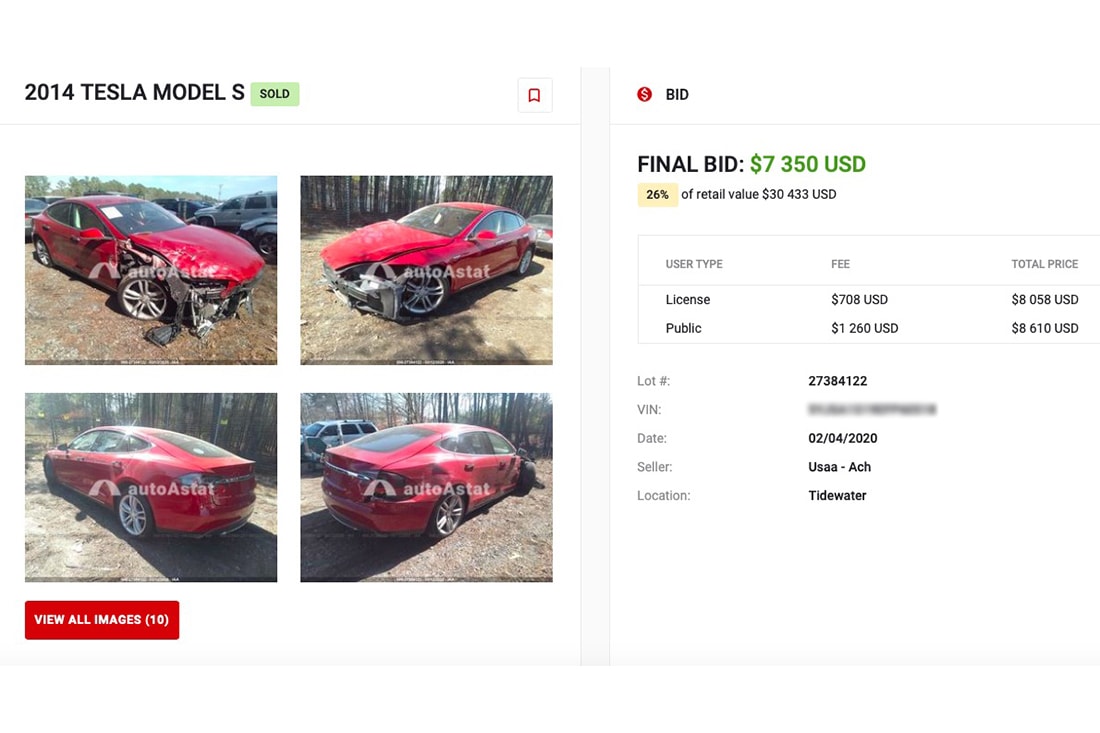 Вот такая Model S (2014 г. в.) в начале апреля 2020 года была продана на аукционе в Вирджинии за $8058 (включая сбор). Впрочем, как мы уже убедились, низкая цена в Америке — вовсе не та сумма, на которую следует ориентироваться. В отношении Tesla это актуально тем паче. Считайте сами: доставка до Минска — $1320, утильсбор — около $340. Ремонт с запчастями специалисты оценивают в $13—15 тыс.!