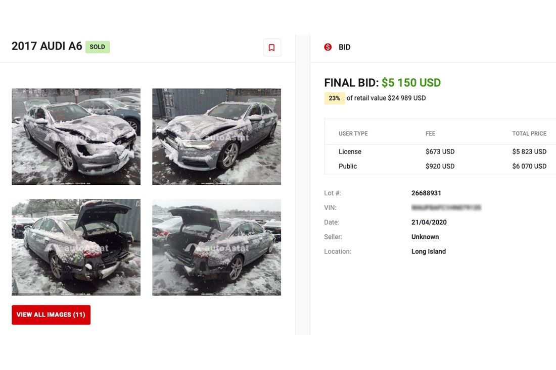 Еще одна нехарактерная для обычного времени, но типичная для пандемии сделка. В конце апреля полноприводная Audi A6 (2017 г. в.) с 2-литровым двигателем была разыграна за $5823 (со сбором).