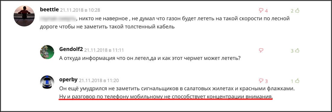 Широкое распространение среди электромонтеров и организаций, связанных с электрообеспечением, получил еще один слух — якобы у водителя была возможность заметить провод.
