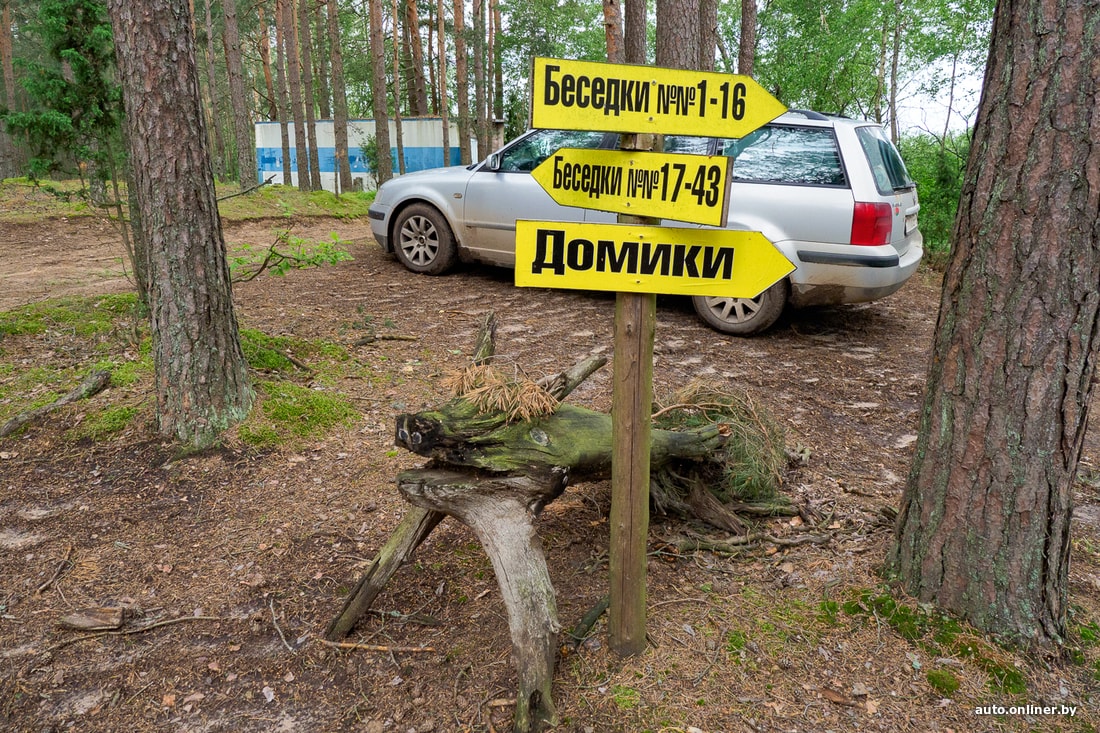 Как говорит автор письма, примерно в 2,5 км от намеченного места они натолкнулись на большую лужу и решили не рисковать: «Решение идти пешком было верным, так как на дороге часто попадались огромные вымоины с водой и грязью, а наш автомобиль не проходил доподготовку к преодолению такого рода препятствий. Лесная дорога привела нас к на удивление хорошо оборудованному кемпингу. Решили сделать привал и оглядеться».
