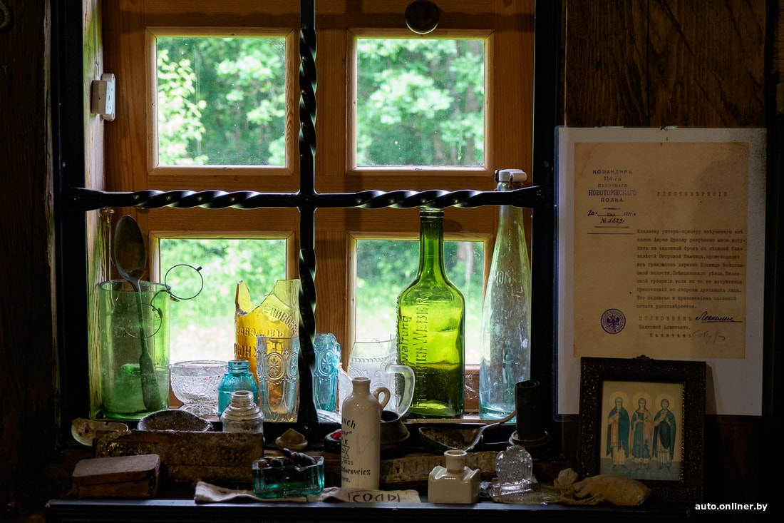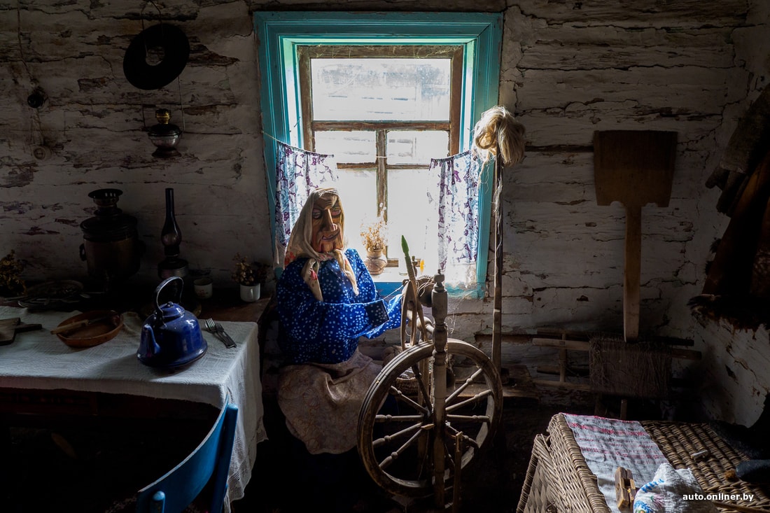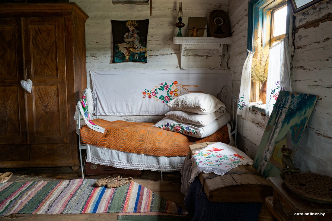 В нескольких домах устроен музей, в котором можно изучать белорусский быт. Нас ведут в одну из хат с глиняным полом, старинной посудой, фотографиями хозяев.