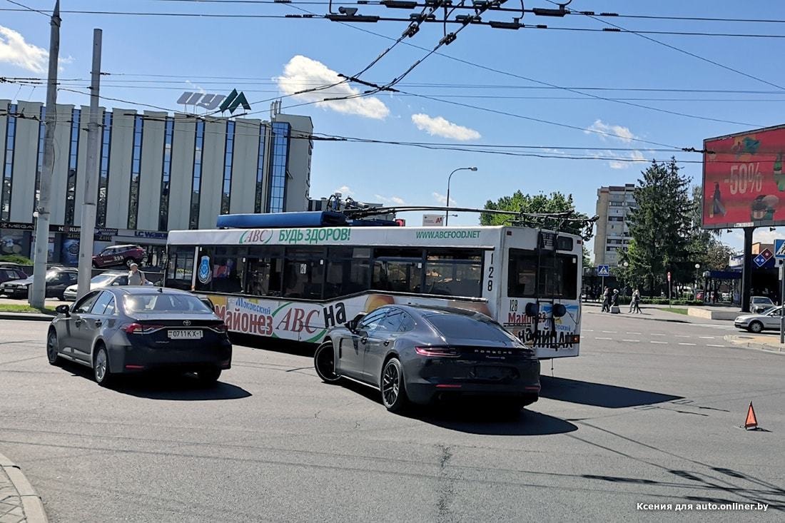 Большую дискуссию вызвало небольшое происшествие в Бресте. С одной стороны в нем участвовал троллейбус, с другой — Porsche Panamera. Особенность в том, что они двигались в одном направлении и выполняли один и тот же маневр, а столкновение случилось в спорном месте непосредственно на перекрестке. Юрий Краснов обращает внимание еще на два автомобиля, которые фигурировали в видео.