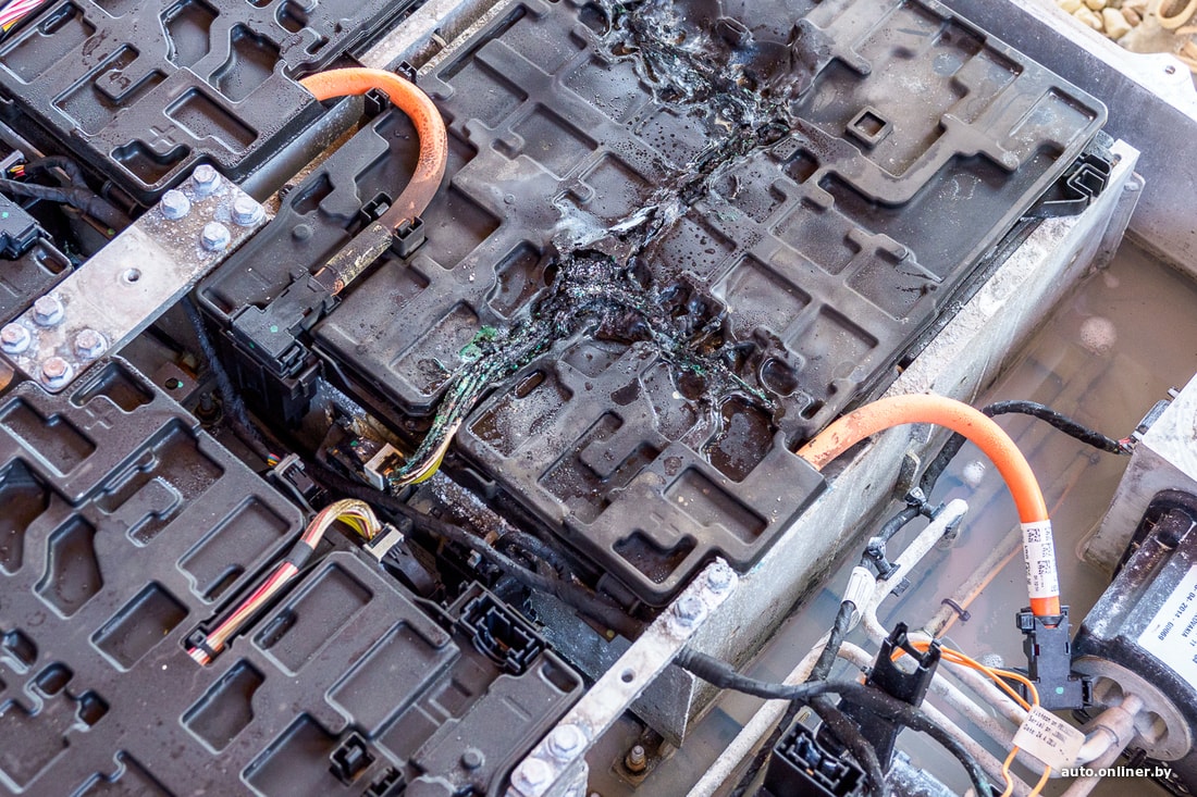Для владельца BMW i3, с которой сняли батарею, неприятным открытием стало то, что машина оказалась «утопленником». Самое паршивое: соленая вода из океана попала внутрь батарейки, произошло короткое замыкание, а в довершение корпус зачем-то взломали ломом (скорее всего, чтобы слить воду).