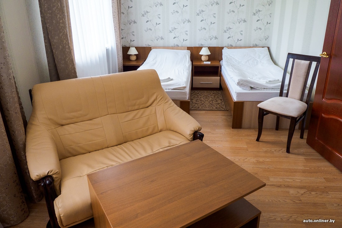 На берегу озера находится гостиничный комплекс, приятно удививший нас удобствами и уровнем комфорта. Номера предлагают как в основном здании, так и в двух отдельно стоящих домиках. Имеются также VIP-сауна с бассейном и шикарной комнатой для отдыха и русская баня.