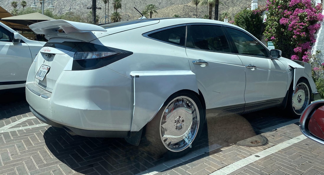 Владелец этого японского кроссовера решил слегка выделить его на фоне других Сrosstour (в США Сrosstour не является такой редкостью, как у нас). Он разработал уникальный бодикит из листового металла и нацепил его поверх оригинальных кузовных деталей. Получилось слегка аляповато, но «мордашка» в стиле Urus читается безошибочно.