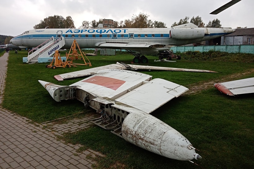 Информация о переезде «птиц» есть в группе «Музей авиационной техники — Минск — Боровая» в vk.com. Оттуда мы узнали, что экспонат самолета Ту-134А 9 октября покинул Боровую и в настоящее время находится на аэродроме Липки. Перед транспортировкой с него были демонтированы зализы и стыковочные ленты крыла и хвостового оперения, стабилизатор, киль и т. д.