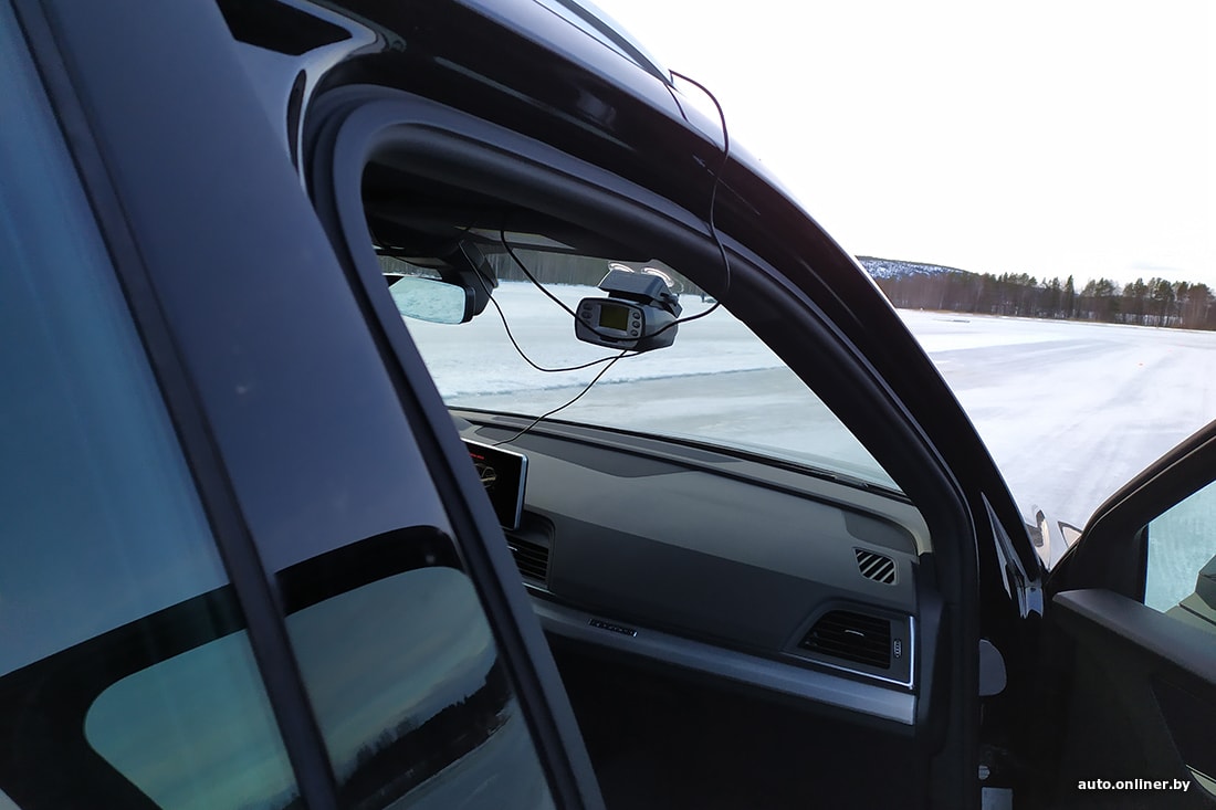 Методология такова: на ограниченном участке льда пилот разгоняется до 40 км/ч. Прибор подает звук, когда нужная скорость достигнута. Водитель резко нажимает педаль тормоза — как говорят, в пол. Прибор фиксирует момент нажатия и отмеряет пройденное машиной расстояние до 5 км/ч. У кого этот отрезок меньше, тот, соответственно, и выиграл — минимальный тормозной путь говорит о лучшем сцеплении с дорогой и в целом о лучших качествах резины.