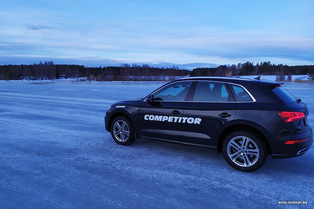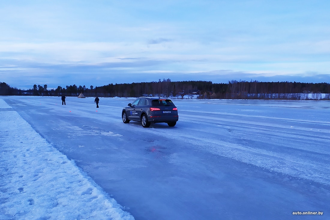 Вероятно, из-за этой «смешанности» покрытий первым испытанием для X-Ice Snow стала езда в привычном каждодневном ритме город/трасса на Audi A6. Резкий старт на льду с водной пленкой сразу напомнил — мы вообще-то на озере. Машину тут же повело. На таком покрытии без пробуксовок поедут, пожалуй, только шиповки.