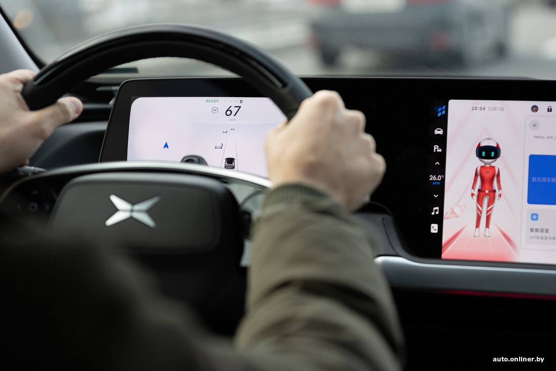 Еще у машины имеется продвинутый автопилот Xpilot 2.5 (седан паркуется самостоятельно, даже если в салоне нет человека) и интерактивный помощник Xpeng Xmart OS второго поколения. Вообще, китайцы просто обожают все эти помощники и голосовые ассистенты. Почти все дорогие EV там имеют свои имена и способны общаться с водителем. Иногда на передней панели даже расположен пластиковый робот с подсветкой и меняющейся «мимикой». У P7 он виртуальный — появляется на экране мультимедийной системы. Когда первый раз включаешь круиз-контроль на Xpeng, машина несколько минут тебе рассказывает, как им пользоваться, и просит быть аккуратнее. Конечно же, все это на китайском языке. Пока перевести хоть что-нибудь в этом автомобиле на русский или по крайней мере на английский невозможно. Не пора ли учить китайский?
