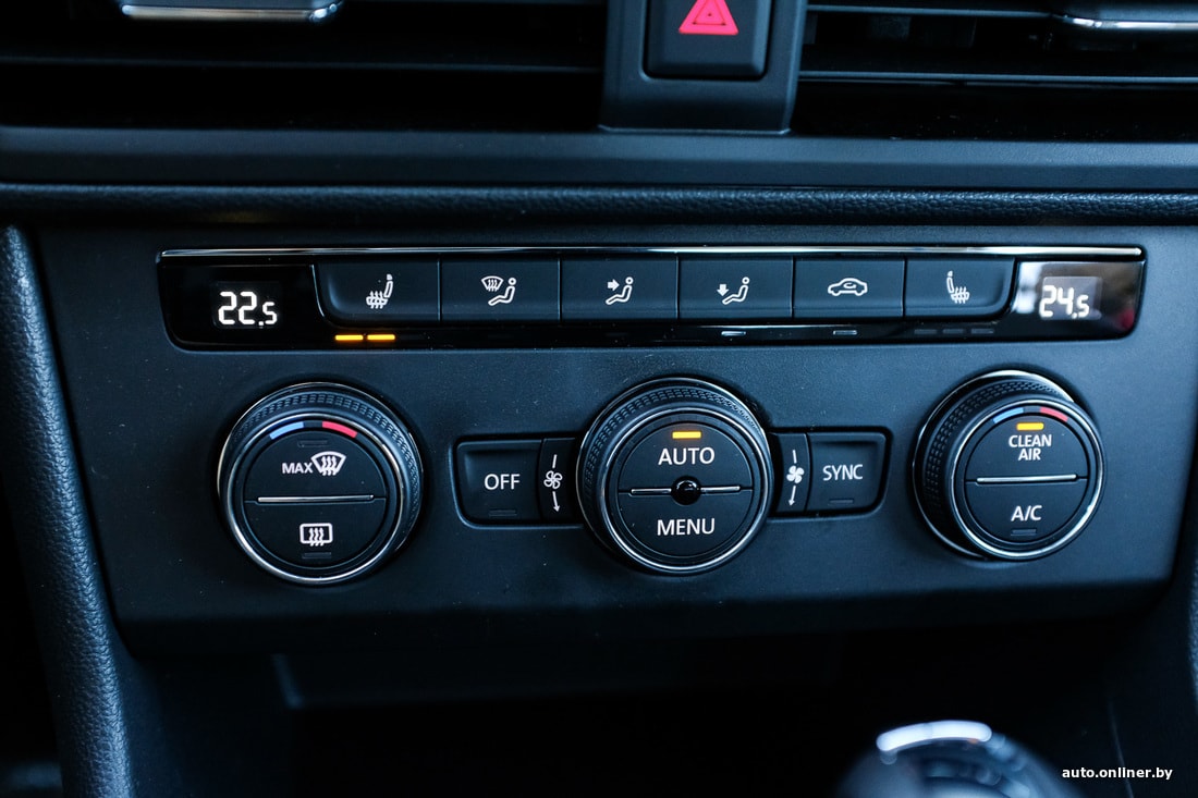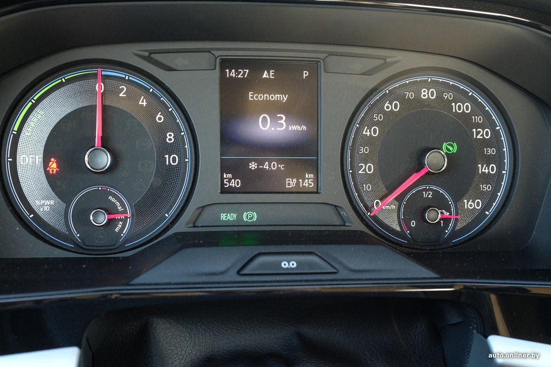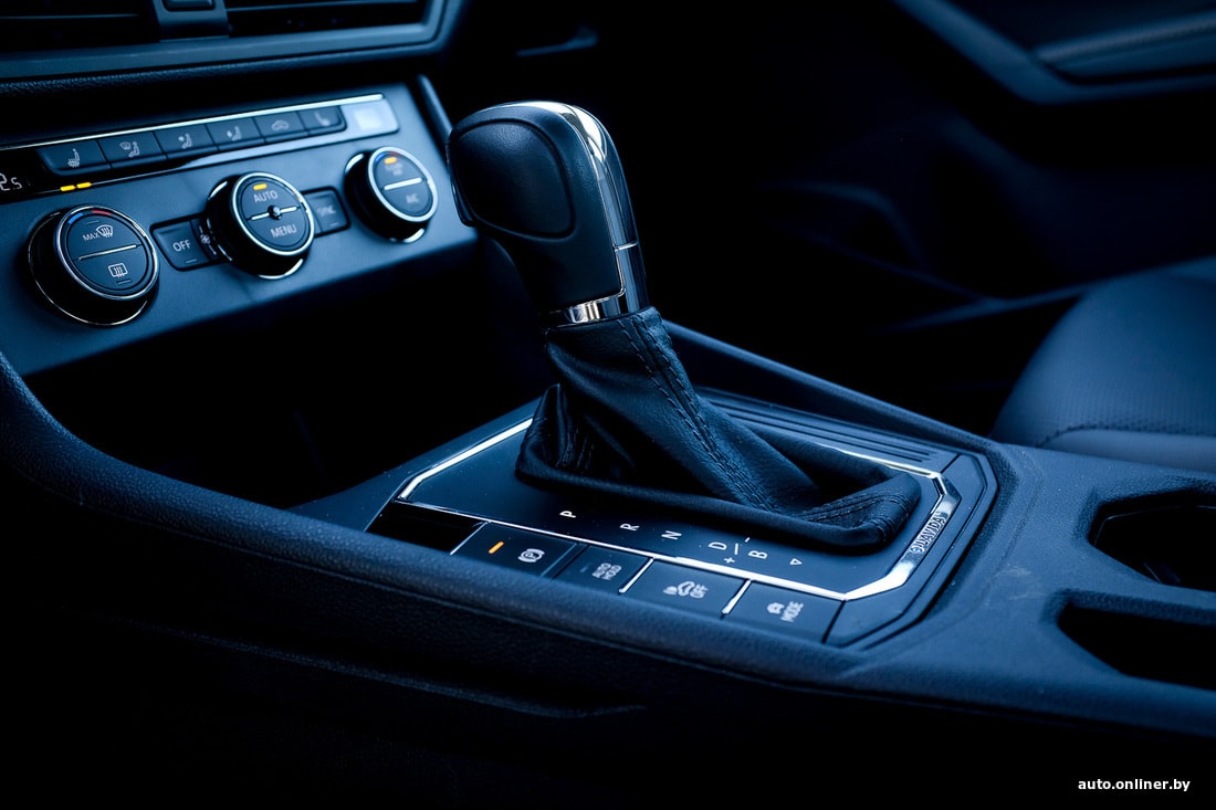 Руль, оформление центральной консоли, блок климат-контроля и даже приборная панель схожи с другими моделями Volkswagen предпоследнего поколения. Рядом с селектором режимов езды («коробка передач») — клавиша электромеханического ручника, отключение Auto Hold и блок управления режимами. Есть три настройки силовой системы — Normal, Eco и Eco+. О них чуть ниже.