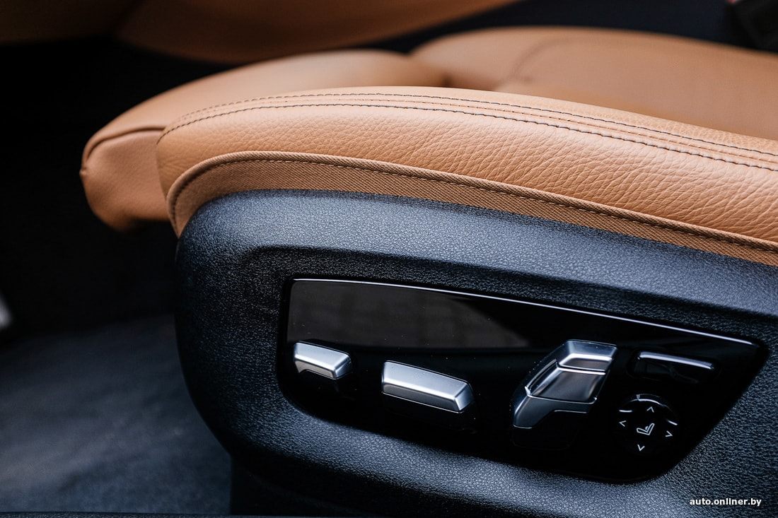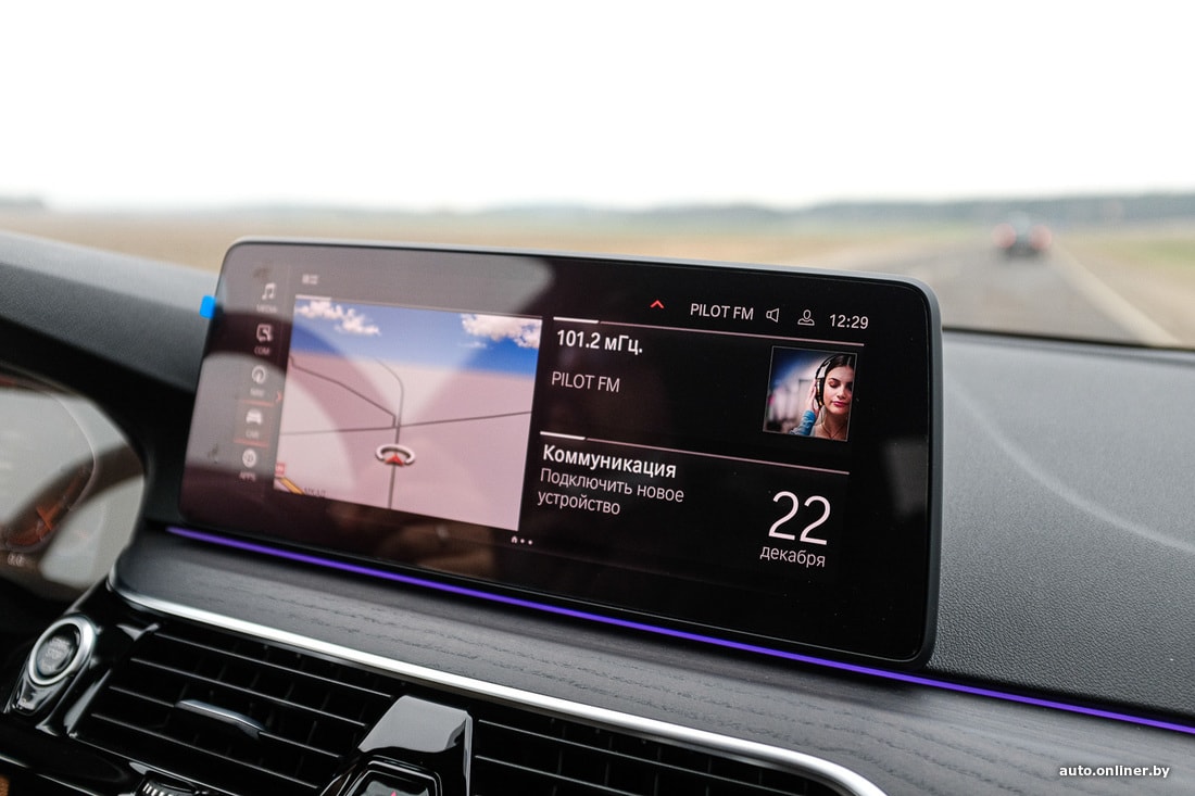 Главным отличием в салоне стало появление нового экрана приборной панели. Он такой же, как на последних X5 и X6. Диагональ — стандартные для данного элемента 12,3 дюйма. Коснулись изменения и мультимедийного блока. До 2020 года на G30 можно было поставить развлекательную систему с экраном от 8,8 до 10,25 дюйма. Теперь 10,25-дюймовый — стандартный для «пятерки». А за доплату можно заказать 12,3-дюймовый «моник». Именно такой был у тестовой машины.