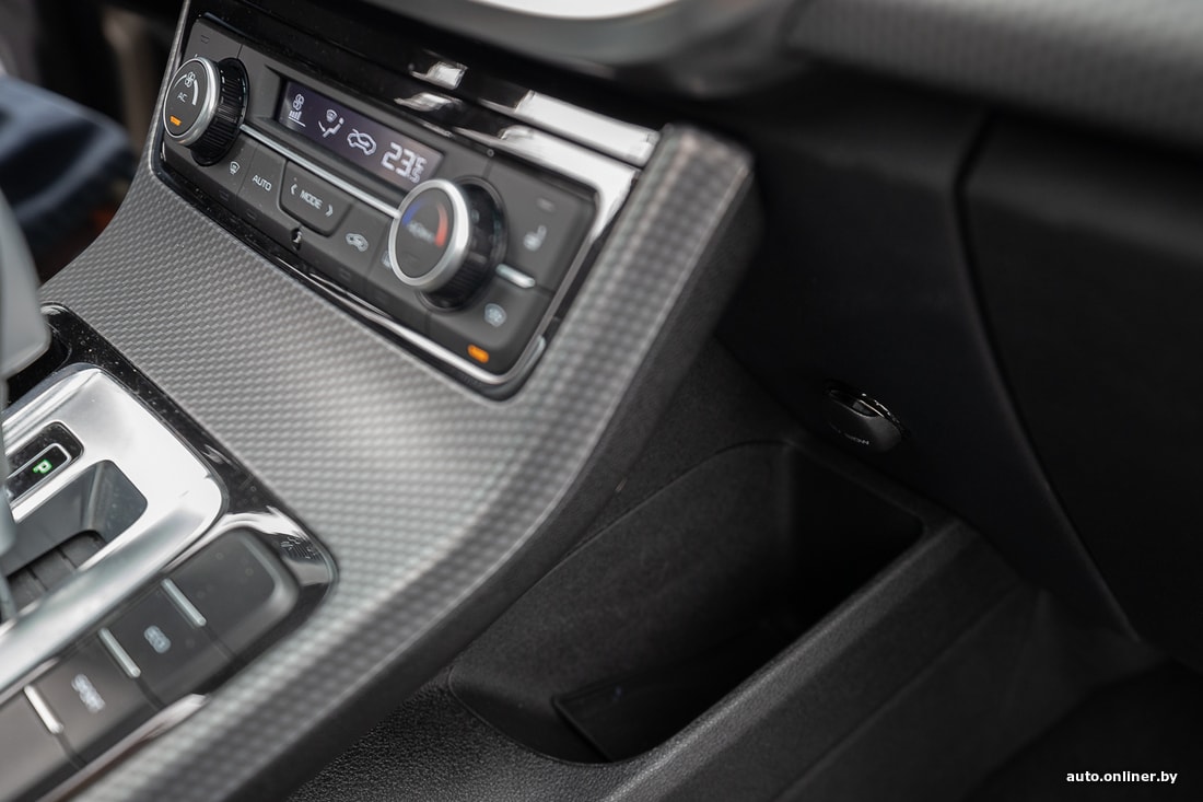 — По обе стороны центральной консоли можно заметить кармашки. Вероятно, специально для мелочи и смартфона. Здесь же есть розетки.