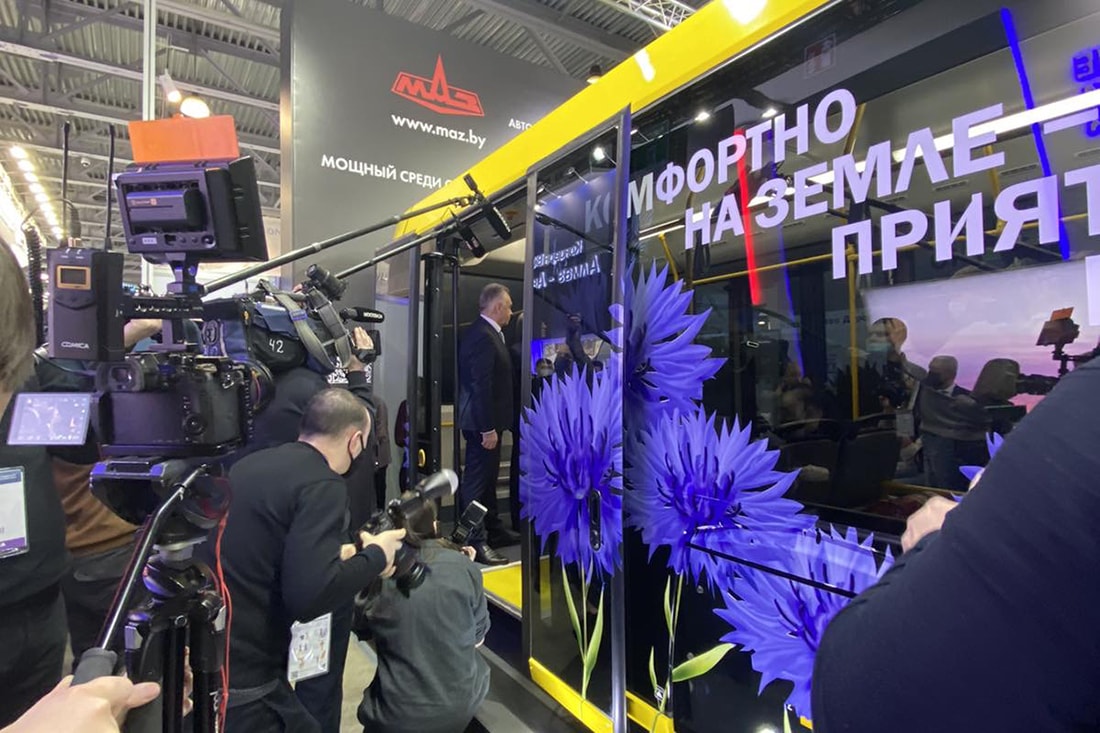Мы подробно рассказывали про этот автобус — МАЗ-271, перронник для аэропортов. Минчане показали модель на выставке NAIS 2021 в Москве, подготовив модель в необычной оклейке — с васильками на желтом фоне. И сразу позитивная новость — уже есть покупатели из Омска.