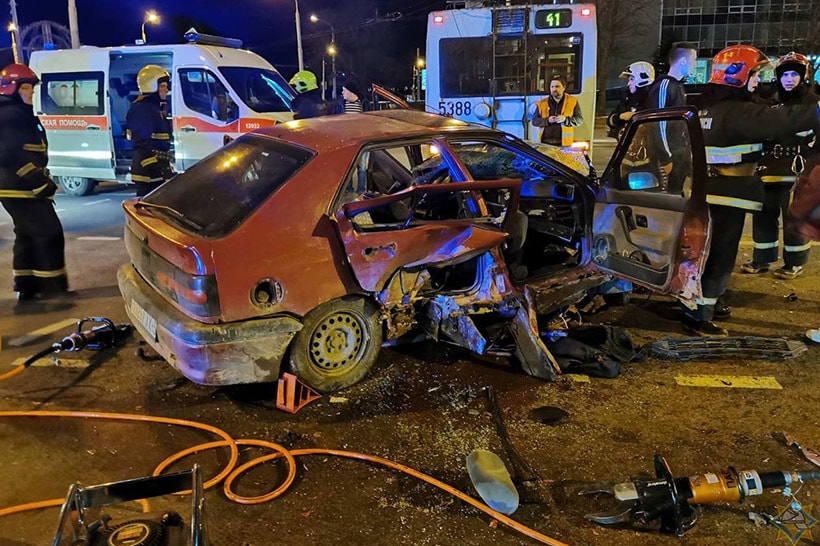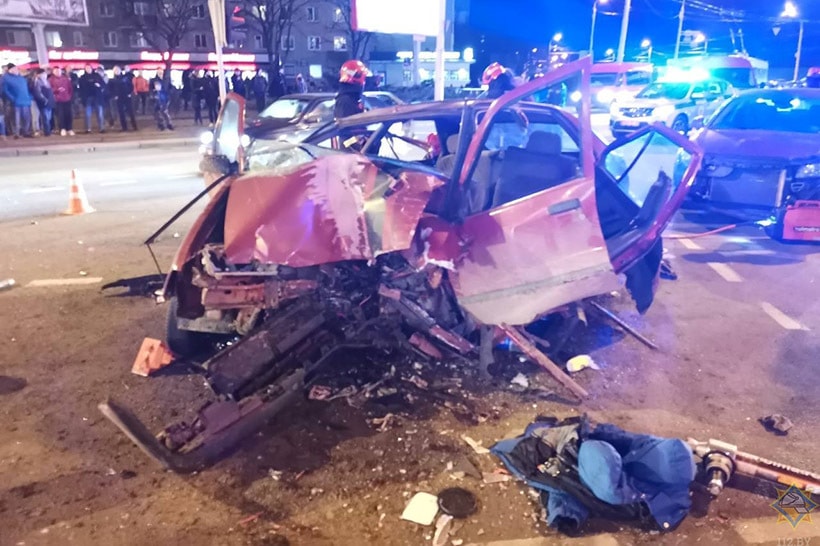 В Минской ГАИ сообщили предварительную версию случившегося: «Водитель Renault двигался по пр. Партизанскому, на круговом перекрестке площади Ванеева проехал на запрещающий сигнал светофора и столкнулся с троллейбусом. От удара Renault отбросило в Chevrolet, двигавшийся позади троллейбуса».