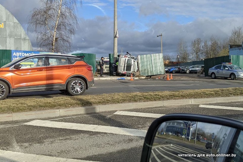 Наши читатели сообщают о серьезной аварии, которая произошла вчера утром на улице Селицкого в Минске. По предварительной информации, автомобиль (предположительно Lada Largus) пробил ограждение и, опрокинувшись, врезался в столб.