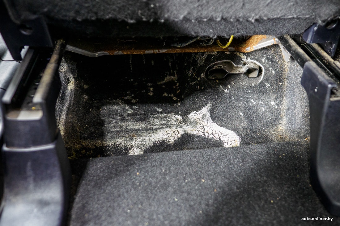 — Мы имеем дело с достаточно сложным случаем: чтобы вычистить салон идеально, забраться во все ниши и щели, придется снять сиденья. Некоторые пятна на полу не удастся оттереть и за несколько часов работы. В таких случаях мы обрабатываем их сильной химией и, если требуется, оставляем отмокать на всю ночь. Затем поутру доделываем работу, пока машина не станет выглядеть идеально. Нужно ли это каждому автовладельцу? Нет. Зачастую достаточно выполнить куда меньший объем работ, пропылесосив и вычистив салон, вымыв кузов, но не проводя углубленных работ, которые потребуют значительных временных и денежных затрат, — рассказал Евгений Сенько.