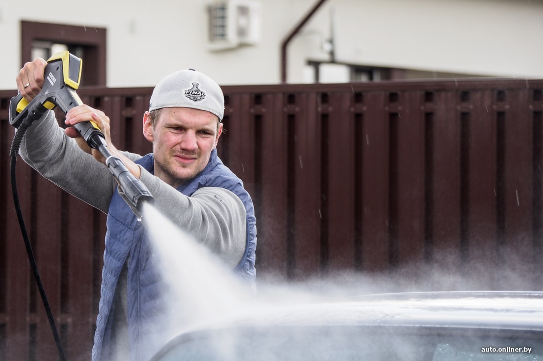 Насмотревшись в предыдущих сериях, как профессионалы моют автомобили, мы решили проверить собственные силы и вызвались самостоятельно отчистить пару машин. В свое распоряжение мы получили мини-мойку Karcher K7 Premium Full Controls Plus с необходимыми насадками, автономный пылесос WD 3 Battery Set, а также комплект автомобильной химии: средство для бесконтактной мойки (шампунь), полироль, средства для очистки салона и ухода за ним.