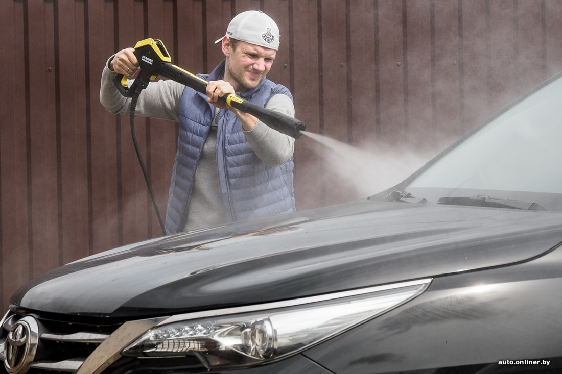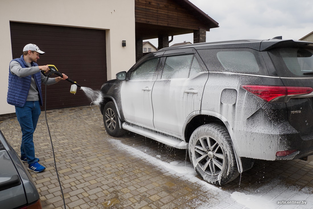 С кем, а точнее с чем, нам придется иметь дело в этот раз? Вера в собственные силы, сменяемая почти бравадой, подтолкнула к тому, чтобы усложнить себе задачу вдвое. Выбранные автомобили не похожи абсолютно ничем. Один — совсем свежая Toyota Fortuner. Владелец использует машину каждый день и для работы, и для нужд семьи — жены и трех дочерей. То есть в авто возят детей. После опыта с трудным мытьем семейного Mitsubishi Outlander в прошлой серии это вызывает некоторое беспокойство.