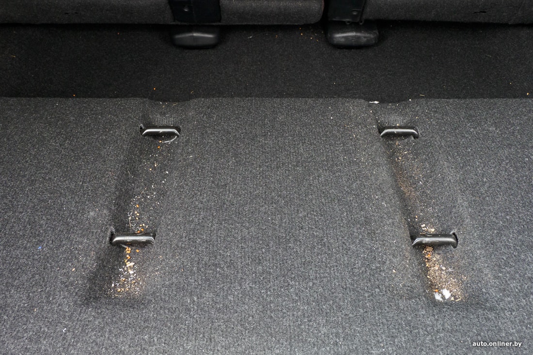 После продувки в салоне визуально стало даже грязнее: песок, крошки и все прочее попадали куда угодно, но самое главное, что в недоступных местах их теперь гораздо меньше, а открытые поверхности мы сейчас пропылесосим. Из практики: двух насадок для пылесоса (обычной и щелевой), в принципе, будет достаточно. Вопрос в терпении. Ворсистое напольное покрытие, как оказалось, может очень цепко задерживать мелкий мусор вроде песчинок, приходится по несколько раз пылесосить буквально каждый участок. И это при том, что в машине в целом опрятно, хоть, как нам известно, здесь ездят в том числе и дети.