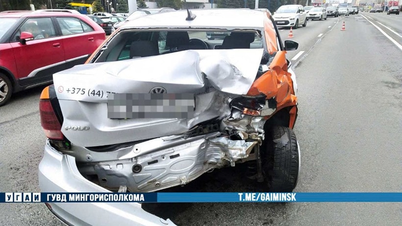 — По предварительной информации, сегодня около 9:10 водитель грузового автомобиля Peugeot, двигаясь по проспекту Независимости со стороны улицы Кирилла Туровского в направлении МКАД, совершил наезд на стоящий в третьей полосе каршеринговый автомобиль Volkswagen. От удара эту машину отбросило на полосу встречного движения, — рассказали в Госавтоинспекции.