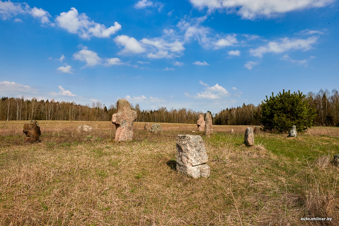 Отъехали недалеко. В нескольких километрах от деревни прямо в поле собраны каменные кресты. Слово «собраны» используем намеренно. Дело в том, что их свез сюда около 15—20 лет назад энтузиаст, местный житель.