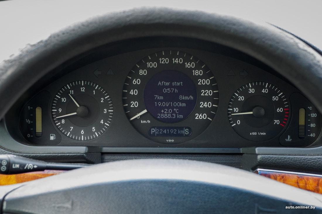 По показаниям одометра, пробег относительно небольшой для машины, которая в следующем году отметит свое 20-летие, — 225 тыс. км. Однако в объявлении указана другая цифра — 440 тыс. Обычно эти данные, наоборот, занижают. Спросили у Виталия о причине разночтения. Вот что он ответил: «440 тыс. — правдивое значение, такое показал компьютер на последней проверке. Очевидно, кто-то скручивал до меня. 200 тыс. — как будто заговоренная цифра, ее чаще других выставляют. А начинаешь предметно говорить с продавцами (особенно дизелей): мол, давай проверим — сдаются и признают, что пробег под 800 тыс. В случае с этим Mercedes не вижу смысла скрывать. Чего бояться? Машина от этих цифр не перестала же ездить!»